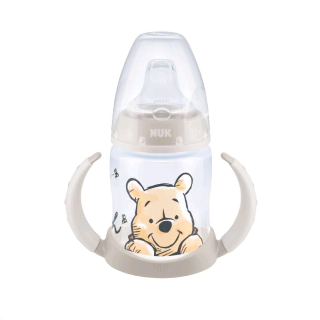 Kojenecká láhev na učení NUK First Choice s kontrolou teploty. Zabudovaný indikátor kontroly teploty změní barvu, pokud je obsah lahvičky příliš horký. Modrá barva indikátoru se změní na bílou. Lahvička miminkům usnadňuje přechod od kojení nebo krmení k samostatnému pití. Kojenecká láhev má měkké silikonové nekapající pítko a nemusíte se bát vylití obsahu. Je ergonomicky tvarovaná a má protiskluzová držátka, takže si dítě může láhev držet samo například i při jízdě v kočárku. Výhodou této super lahvičky je, že se snadno rozmontujete a čistí. Vyrobená z vysoko kvalitného plastu polypropylénu a neobsahuje BPA (Bisfenol A). Vhodné pro děti od 6 do 18 měsíců. Klinicky testováno. Balení obsahuje: