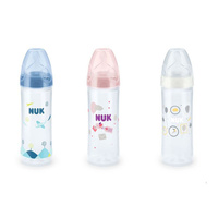 Kojenecká láhev NUK LOVE 250ml, 6-18 m. Dětská kojenecká láhev NUK LOVE z polypropylenu je určená ke krmení či dokrmování nejmenších dětí. Je opatřená ortodontickou antikolikovou savičkou ze silikonu s flexibilní zónou a vylepšeným anti-kolikovým Air Systémem, který snižuje výskyt kojenecké koliky způsobené polykáním vzduchu. Předností této savičky je napodobení tvaru matčiny bradavky při kojení. Její speciální tvar zajišťuje správný vývoj zubů dítěte a ústní dutiny. Úzká láhev se vám bude v ruce pohodlně a bezpečně držet, díky jejímu extra širokému hrdlu se snadno čistí a plní. Velmi odolná, pevná a nerozbitná láhev je vyrobená z vysoce kvalitního polypropylenu. Můžete ji použít také ke zamrazování. Lahev je dodávána se savičkou pro děti od 6-18 měsíců.