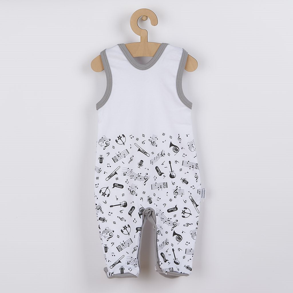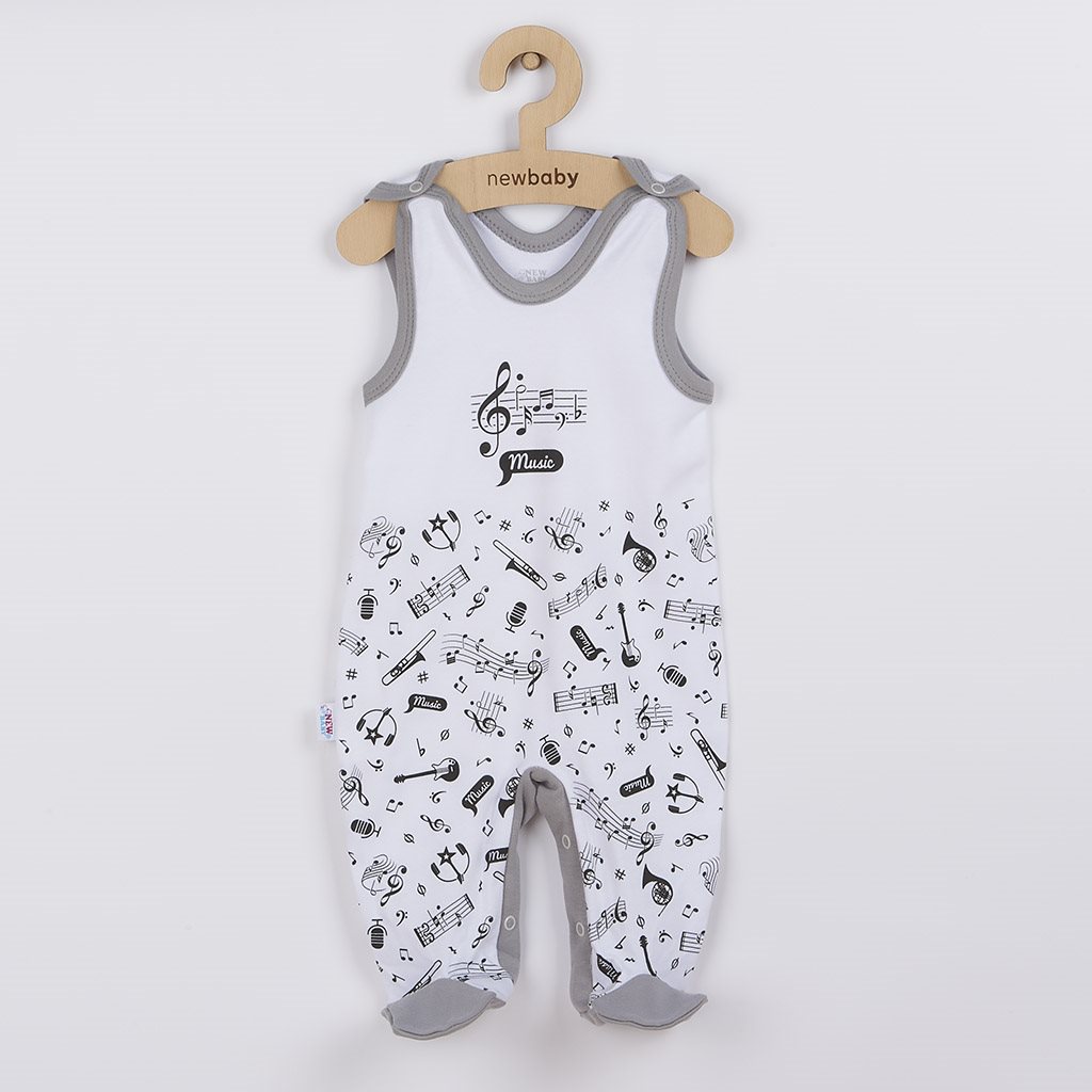 Originální, hravé a zároveň veselé bavlněné kojenecké dupačky New Baby Music pro miminka. Dupačky jsou jednobarevné s originálním obrázkem notiček a nápisem Music. Spodní část je celopotištěná notičkami a hudebními nástroji. Zapínání na cvočky na ramínkách a mezi nožičkami usnadňuje oblékání a přebalování. Měkký, příjemný a velmi kvalitní materiál zaručí spokojenost Vašeho dítěte. Náše originální a zároveň veselé dupačky jsou vhodné pro kluky i holčičky. Složení: 100% bavlna. Rozměry: obvod kolem hrudníku cca 24 cm, délka od rozkroku cca 20 cm, délka od ramínek cca 64 cm.