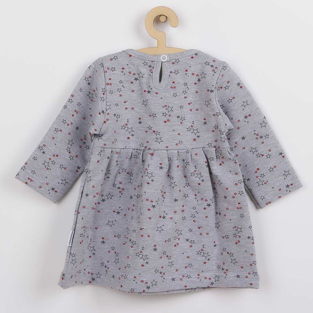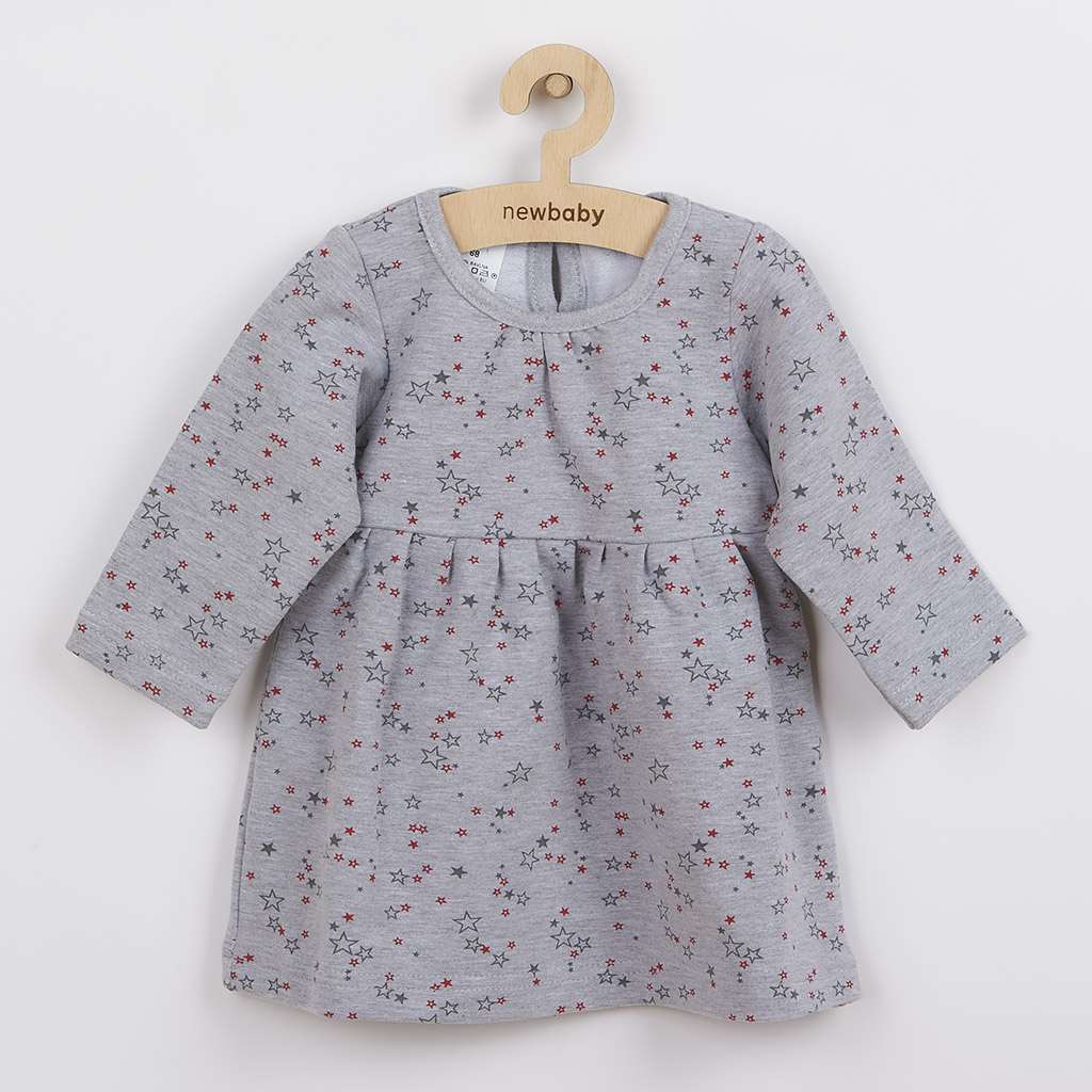 Moderní a praktické kojenecké šatičky s dlouhým rukávem české značky New Baby For Girls. Šatičky Áčkového střihu celopotištěné hvězdičkami, jsou vhodné na jarní i podzimní období. V kombinaci s legínkami s naší nabídky budou šatičky vhodné na krásné procházky, nebo jako domácí oblečení. Šatičky jsou prostě neodmyslitelnou součástí holčičího šatníku. Zapínáni na cvoček na zadní straně. Jsou vyrobeny z velmi příjemého materiálu, ve kterém se bude vaše holčička cítit velmi příjemně. Složení: 92% bavlna, 5% polyester, 3% elastan.