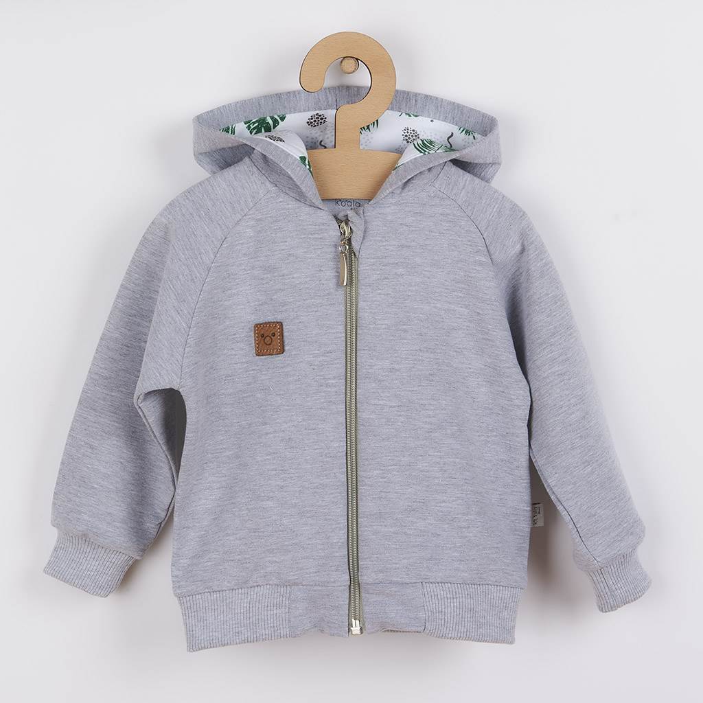 Originálni a stylová 2-dílná soupravička Koala Nature. Součástí soupravičky jsou tepláčky a mikinka s kapucí. Mikinka má moderní krásnou melírovanou barvu a kapuci s bavlněnou podšívkou . Mikinka má zapínání na zip po celé délce, pružný lem v pase a na rukávcích. Tepláčky mají na nohavičkách široký lem a stylový snížený sed čímž dodávají ten správný šmrc. Soupravičku skvěle využijete nejen do kočárku, autosedačky, ale i na procházky či jako pohodlné oblečení na doma. Dokonalá a stylová soupravička do šatníku holčiček i chlapečků. Soupravička je vyrobena z velmi příjemňočkého, měkkého materiálu a je velmi kvalitně a prezicně ušitá. Materiál: 85% bavlna, 15% polyester.