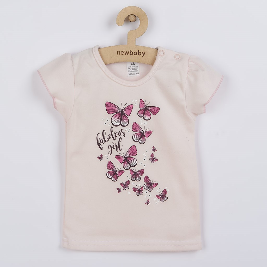 Roztomilá a stylová 2-dílna soupravička pro holčičky české značky New Baby Butterflies. Soupravička se skládá z trička a sukýnky. Tričko s krátkými nařasenými rukávy je zdobeno obrázkem motýlků. Zapínání na ramínku na cvočky ulehčí oblékání přes hlavičku miminka. Šedou melírovanou sukýnku zdobí krásný volánek, který dodává sukýnce ten správný šmrnc. V pase je širší guma, která netlačí na bříško miminka. Soupravička je precizně a kvalitně ušitá a je vyrobená z velmi příjemného materiálu, ve kterém se bude vaše holčička cítit velmi pohodlně. Moderní střih, motýlky, volánky a krásné barvy. To vše najdete na naší soupravičce Butterflies, která je neodmyslitelnou součástí holčičího oblečení. Složení: tričko: 100% bavlna, sukýnka: 95% bavlna, 5% elastan.