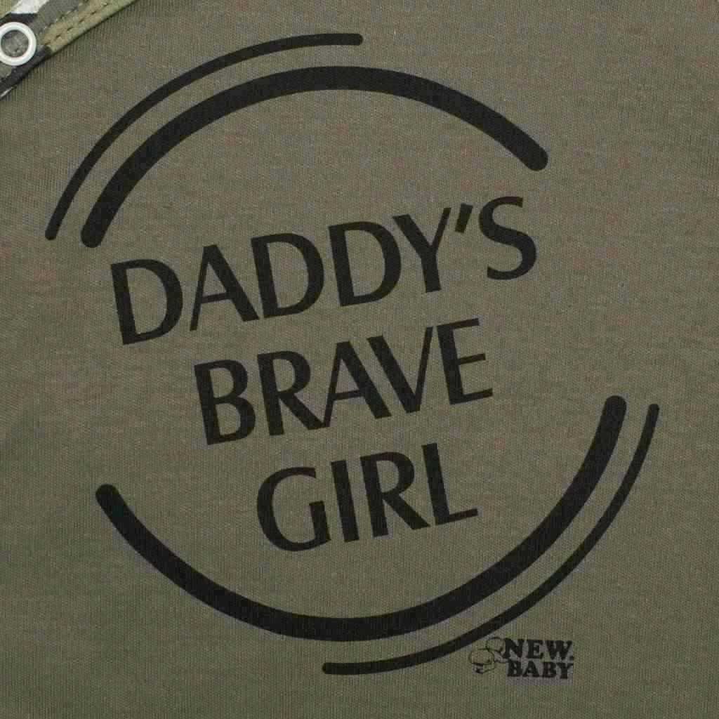 Stylový bavlněný kojenecký overal české značky New Baby Army boy pro miminka. Dětský overálek je zdoben maskáčovým potiskem a nápisem DADDY´S BRAVE GIRL. Na ručičkách je pružný lem, který netlačí a ulehčí oblékání. Overálek je pro miminka důležitým kouskem oblečení. Při jakémkoliv pohybu jsou zádička miminka stále přikrytá. Praktické boční zapínání na cvočky po celé délce a mezi nožičkami velmi usnadní oblékání a přebalování. Army styl se vrátil do módy a je dechberoucí. Klademe důraz na kvalitu a proto se díky příjemnému, měkkému a kvalitnímu materiálu, bude Vaše miminko cítit velmi příjemně. Složení: 100% bavlna.