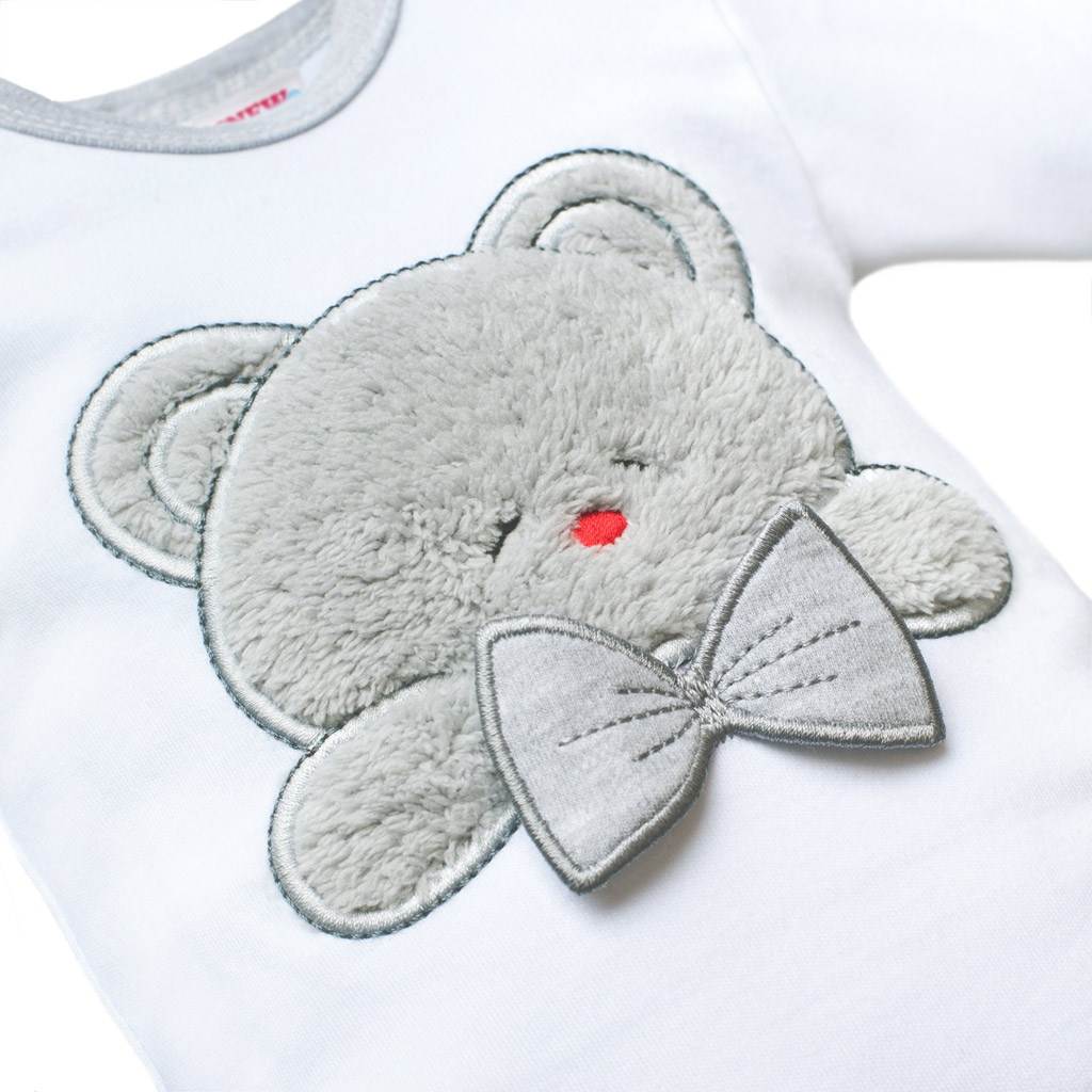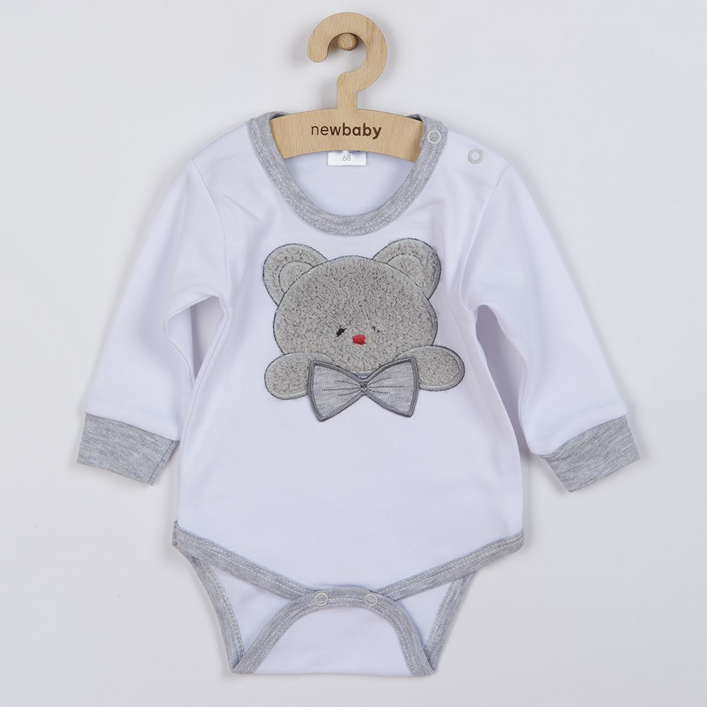Originální luxusní bavlněné kojenecké body s dlouhým rukávem New Baby Honey Bear. Dětské body zdobí 3D obrázek medvídka, krásný ozdobný lem okolo krčku, nožiček a ručiček. Široký lem kolem ručiček je elastický a netlačí ručičky miminka. Body je vyrobeno z příjemňoučkého, měkoučkého a kvalitního materiálu, ve kterém se bude Vaše miminko cítit příjemně. Body má zapínáni na cvočky na ramínku a mezi nožičkami, což usnadní oblékání a přebalování. Dopřejte Vašemu miminku vyniknout v originálním body. Složení: 100% bavlna.