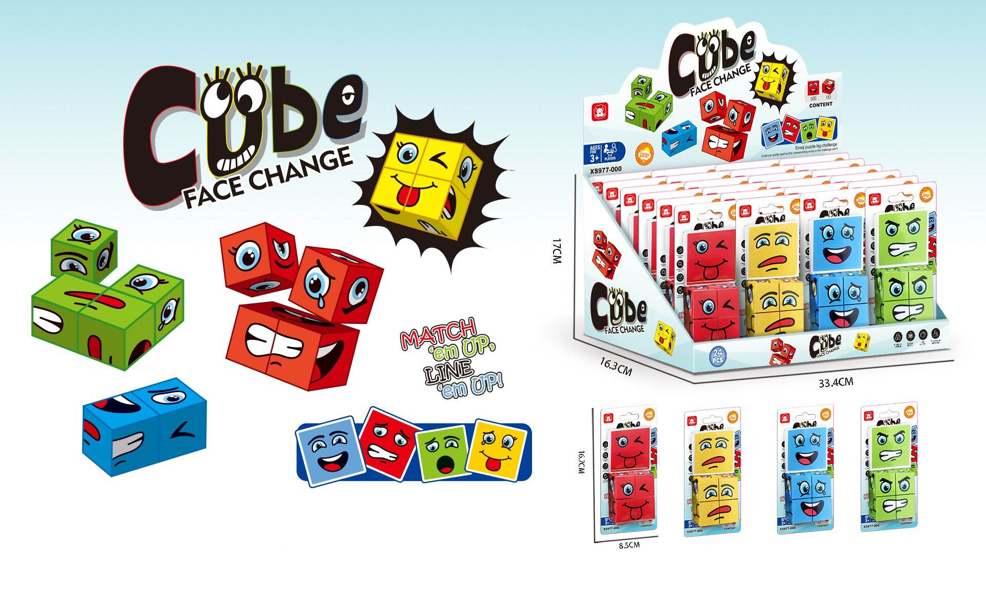Magická kostka úsměv. 24 ks display box. 4 varianty - červená, žlutá, modrá, zelená.