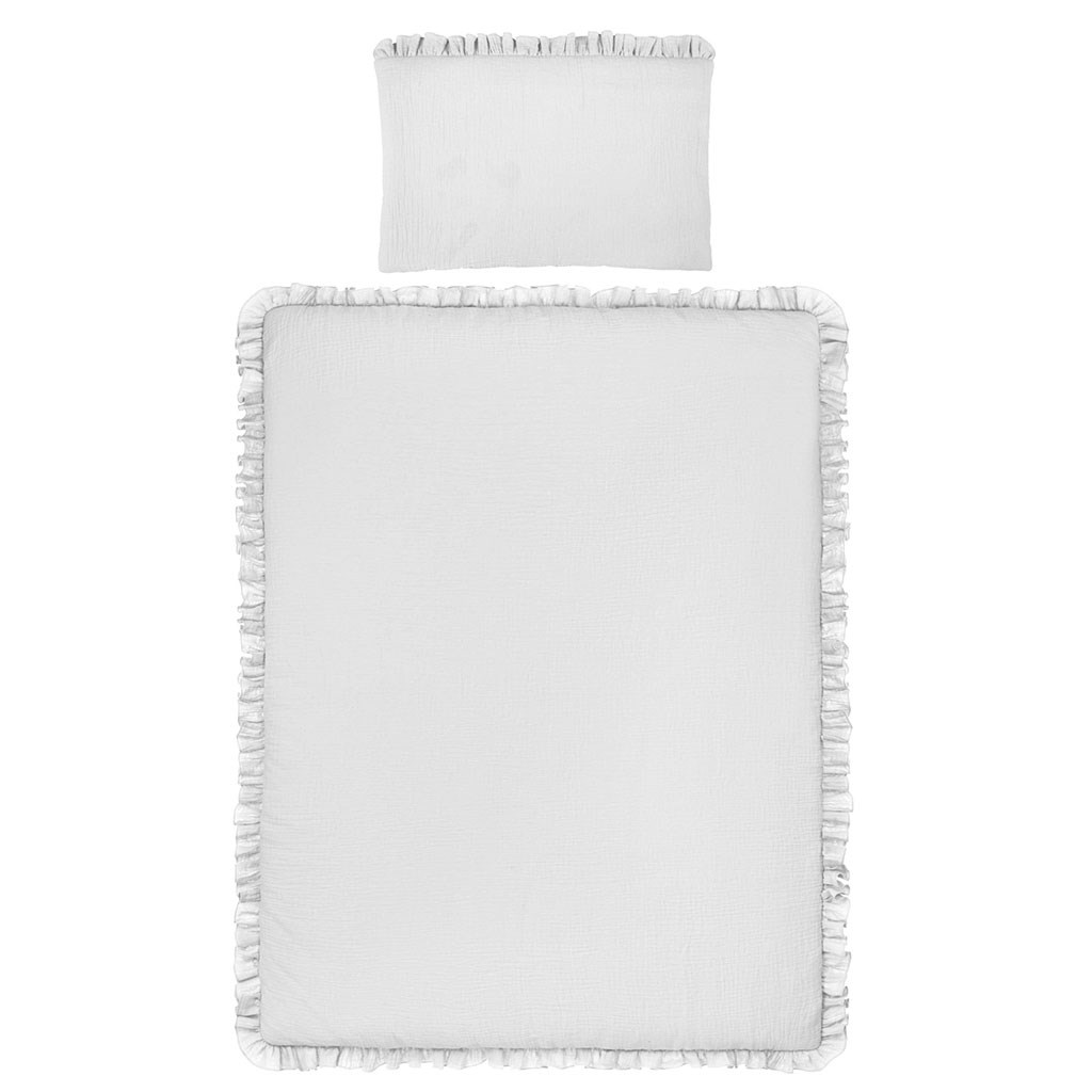 Nádherný mušelínový set do postýlky Belisima Mušelín. Set obsahuje polštářek a peřinku. Vše je vyplněno antialergickým vláknem. Set je ušitý z vysoce kvalitního bavlněného materiálu. Praktický set lze využít do postýlky, kočárku, kolébky. Mušelínový set luxusně a jemně pohladí pokožku vašeho miminka. Rozměry: polštář: cca 35x25 cm, peřinka: 90x120cm. Složení: povlak 100% bavlna, výplň 100% polyester-antialergická výplň.