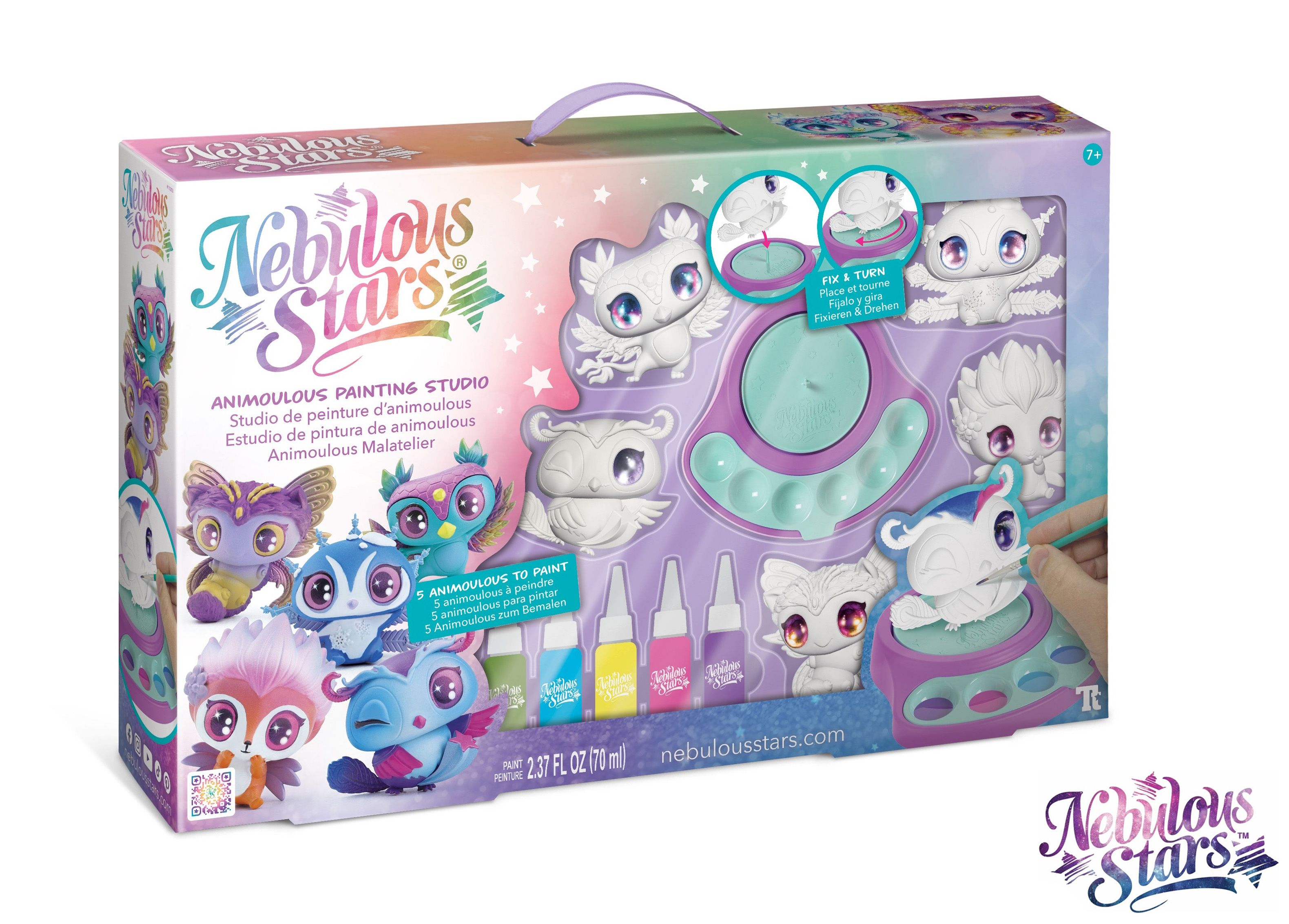 Nebulous Stars Barvení Animoušů. Obsah otočný stojan s paletou na barvy, 5 postaviček, 6 barev, třpytky, 2 štětce, návod.