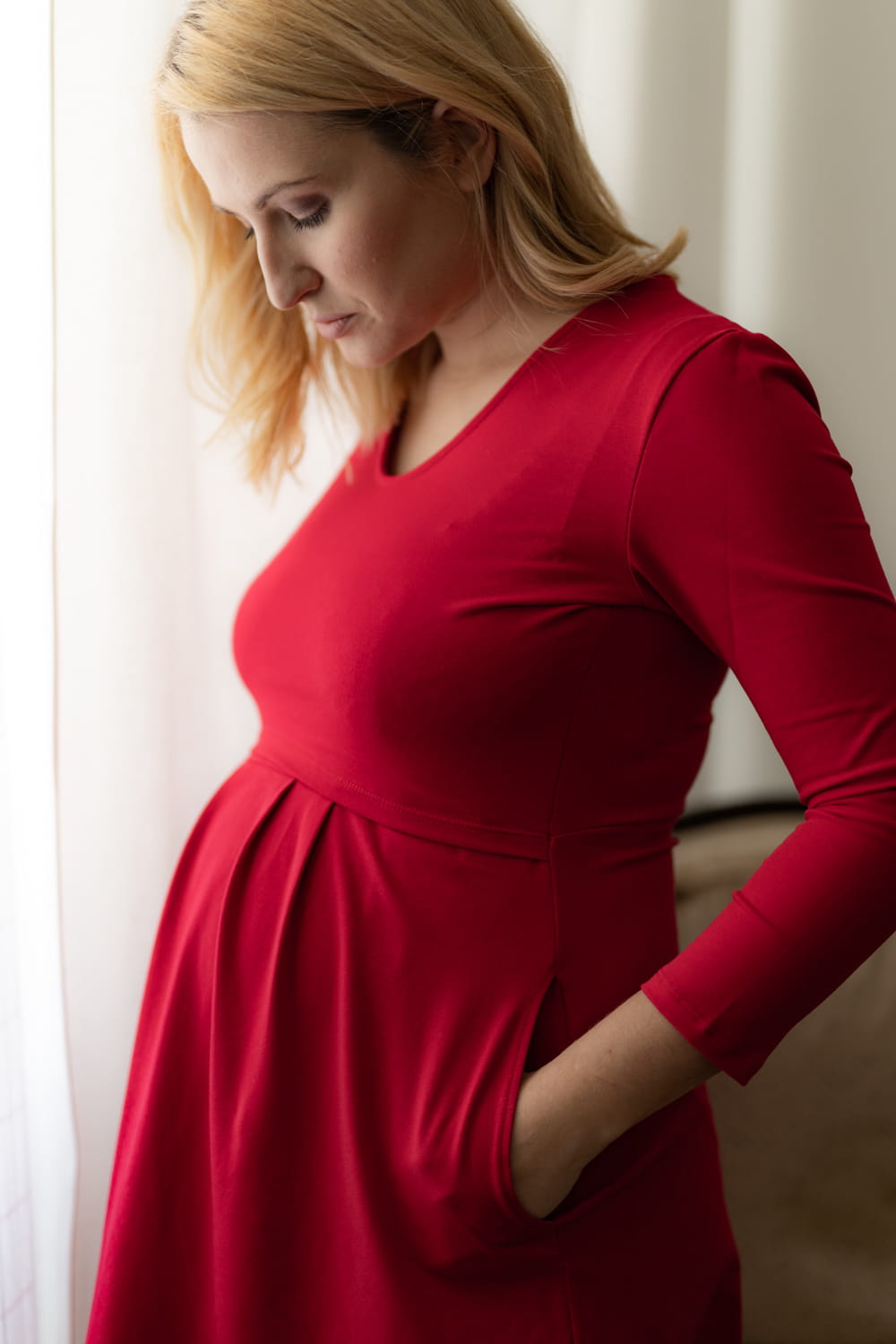 Šaty Carry lze kombinovat s různými doplňky a vytvářet tak outfity pro různé příležitosti: džínovou bundičku a balerínky na cestu do parku, svetřík a mokasíny na neformální setkání s přáteli nebo jehlové podpatky a náhrdelník na koktejlový večírek. Jsou to ideální těhotenské a kojící šaty pro různé příležitosti!