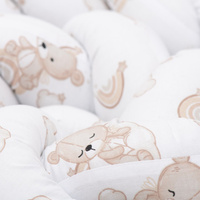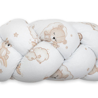 Heboučký a praktický pletený cop české značky New Baby je moderní alternativou tradičního nebo polštářového mantinelu nejen do dětské postýlky. Všechny tři prameny jsou vyrobeny z velmi kvalitního bavlněného materiálu a antialergické polyesterové výplně a ručně spletené do copu. Můžete jej použít v postýlce, kolébce, kde chrání dítě před tvrdými příčkami postýlky a izoluje od studené stěny. Ve vaší posteli splní funkci hnízdečka, kdy miminko jednoduše ovinete pro ještě větší pocit bezpečí a pohodlí. Mantinel se přizpůsobí každé postýlce a pomocí tří přiložených stuh jej snadno upevníte. Starší dítě jej může využívat pro zábavu nebo jako originální dekoraci dětského pokoje.
