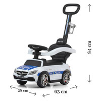 Dětské odrážedlo s vodící tyčí Mercedes Benz AMG C63 Coupe je vyrobené z kvalitního plastového materiálu. Jeho sportovní vzhled upoutá pozornost nejen každého dítěte, ale i rodiče. Váš malý závodník či závodnice se v něm bude cítit jako v opravdovém mercedesu. Odrážedlo pomáhá rozvíjet motorické schopnosti dítěte a zaručí mu spoustu zábavy a legrace. Jezdítko má na volantu efektní houkačku a dvě tlačítka s melodiemi. Odrážedlo je určeno jak pro nejmenší děti, které umí sedět, tak i pro děti, které se už naučily chodit. S autíčkem si děti užijí spoustu legrace a zábavy protože má nenapodobitelný vzhled skutečného Mercedesu, komfortní široké sedadlo s úložným prostorem, volant, kvalitní plastová kola a pohodlnou a zároveň pevnou vodící tyč s držákem na nápoje, kterou lze řídit autíčko. Vodící tyč, opěrky na ruce a podnožky lze sundat, a tím dítě využije autíčko jako klasické odrážedlo. Baterie nejsou součástí balení (2x AA 1.5V).