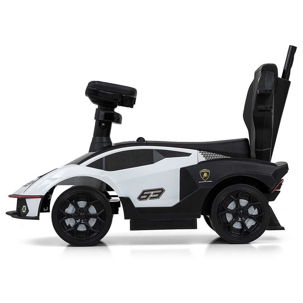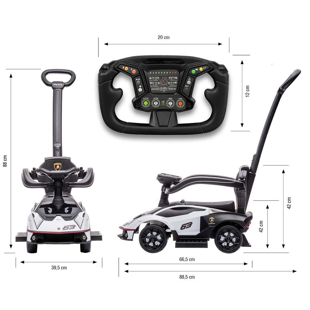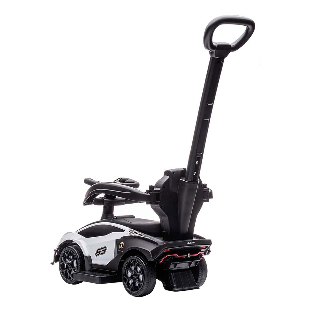 Dětské odrážedlo s vodící tyčí Lamborghini je vyrobeno v licenci Lamborghini a Lamborghini Bull and Shield. Váš malý závodník či závodnice se v něm bude cítit jako v opravdickém supersportovním autě. Autíčko je vyrobeno s důrazem na každý detail a kvalitu použitých materiálů. Jeho vzhled upoutá pozornost nejen každého dítěte, ale i rodiče. Odrážedlo pomáhá rozvíjet motorické schopnosti dítěte a Váš malý závodník či závodnice si s ním užije spoustu zábavy a legrace. Autíčko má na volantu tlačítka vydávající různé melodie a zvuky. Pneumatiky jsou vyrobeny z PVC -termoplastického materiálu, který se vyznačuje velkou pružností a odolností, takže je lze používat na všech površích, aniž by došlo k jejich poškození nebo poškrábání.