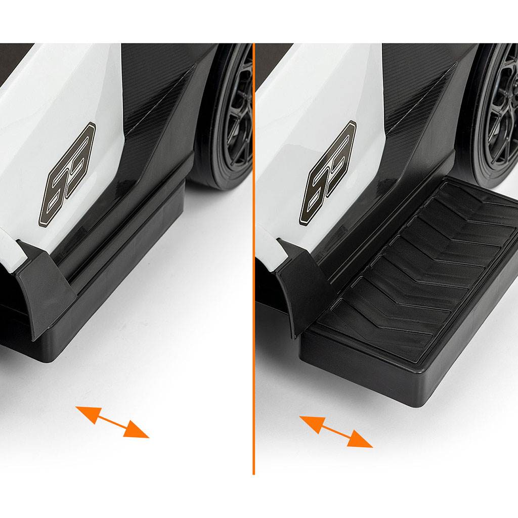 Je určeno jak pro nejmenší děti, které už umí sedět, tak i pro děti, které se už naučily chodit. Odrážedlo má otočná přední kola, široké a komfortní sedadlo s úložným prostorem a pohodlnou a zároveň pevnou vodící tyč, kterou lze odrážedlo řídit. Vodící tyč, opěrky na ruce a podnožky lze sundat a tím dítě využije autíčko jako klasické odrážedlo. Baterie nejsou součástí balení (2x AA 1.5V).