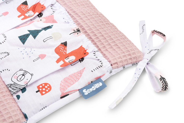 Organizér do dětské postýlky Waffle je nejen praktický výrobek, který vám usnadní péči o dítě, ale také dekorace do dětského pokoje. Má 5 kapes vyztužených gumou, do kterých se vejdou všechny potřebné doplňky. Horní kapsy měří přibližně 15 x 15 cm, spodní 24 x 18 cm. Box na nářadí lze snadno připevnit k rámu postýlky pomocí všitých stuh. Je navíc polstrovaná vrstvou antialergického netkaného materiálu ze silikonu. Vnější strana je podšitá 100% bavlnou. Organizér lze kombinovat s dalšími výrobky z naší nabídky.