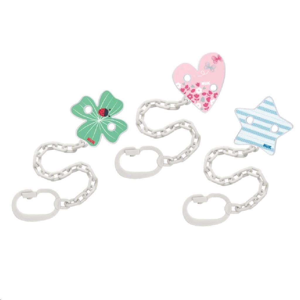 Veselý, barevný řetízek na dudlík NUK, je skvělým pomocníkem pro miminka i rodiče. Nenahraditelný zvláště během cestování a procházek. Díky sponě dudlík nespadne na zem a nezašpiní se, a neztratí se. Má jednoduché použití a je vyroben tak, aby se dal připnout k dětskému oblečení. Pestré barvy a veselé obrázky dítě zaujmou. Určeno pro děti od prvních dnů života.