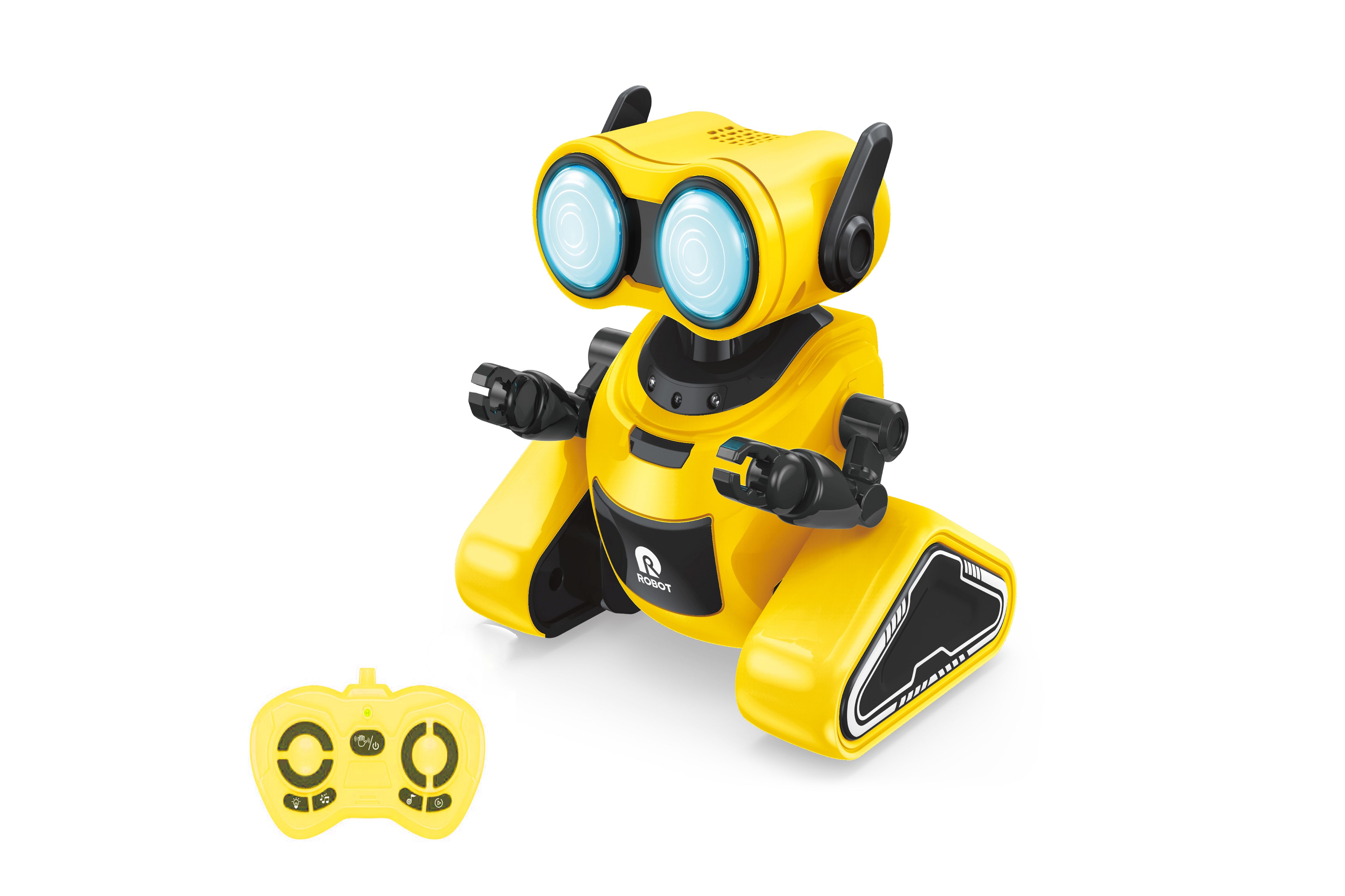 Robot RC na dálkové ovládání. Rozměry 13x8,5x13 cm. Ovládání ovladačem a gesty. Světelné a zvukové efekty. Ovladač - pohyb dopředu a dozadu, otáčení doleva a doprava, světlo (4 módy), zvuk (3 melodie), akční zvuk, demo režim, tlačítko pohybové ovládání/ON/OFF. USB kabel součástí. Přepínač ON/OFF na zádech robota. 3.7V bateriový pack do robota součástí, 2xAA do ovladače součástí.