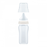 Skleněná kojenecká láhev NUK Perfect Match s kontrolou teploty a měkkou silikonovou savičkou. Speciální tvar typický pro savičky NUK s ortodontickou antikolikovou savičkou je modelován podle mateřské bradavky při kojení. Ponechává dostatek prostoru pro přirozené sací pohyby jazyka i čelisti. Velká, široká opora rtů při pití připomíná matčinu pokožku. Lahvička je navržena tak, aby miminko nepřišlo do kontaktu s pevnými plastovými částmi. Vylepšený systém proti polykání vzduchu při pití Anti Colic Air System zajišťuje přirozený tok mléka, aby dítě pilo uvolněně bez polykání vzduchu. Hladce se zužující tvar s antikolikovou funkcí pro plynulý a nerušený průtok pití, velikost M (od 3 m, pro mateřské mléko). Kojenecké láhve jsou nyní vybaveny novou NUK kontrolkou teploty a pomáhají tak zabránit tomu, aby vaše dítě pilo příliš horký příkrm. Kontrolka vypadá jako teploměr, je umístěna mezi ryskami a teplota obsahu láhve změní její barvu. Pokud je příkrm příliš horký, modrá kontrolka se změní na bílou. V ideálním případě by měl příkrm mít tělesnou teplotu (37 °C), což odpovídá modrému zabarvení displeje. Vyrobena z vysoce kvalitního skla a neobsahuje BPA (Bisfenol A). Obsah láhve 230 ml. Vhodná pro děti od 3 měsíců, M od 3 m pro mateřské mléko). Klinicky testováno.