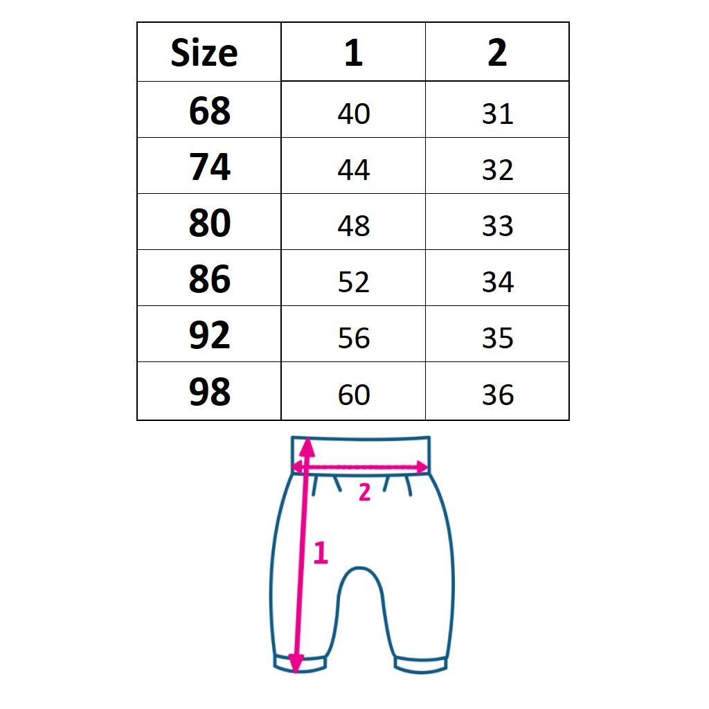 Nápadité softshellové kojenecké kalhoty New Baby. Kalhoty jsou vyrobeny v České republice z kvalitního materiálu softshell. Materiál je hladký, elestický, měkký a příjemný na dotek. Do určitého stupně je také voděodolný, nenasakuje vodu a je odolný vůči znečištění. V pase je našitá širší gumička, která netlačí na bříško miminka. Na nohavičkách jsou širší pružné lemy a ve vrchní části kalhot je našitá reflexní paspulka. Menší velikosti jsou velmi prakticky ušité, protože jsou v bocích dostatečně široké pro miminka, které nosí plínky. Velikost 92-98 jsou ušité klasicky. Celá vnitřní strana kalhot je zateplená krátko střiženým polarem, který zvyšuje komfort nošení a zajišťuje teplo. Softshellové kalhoty jsou vhodné jako sportovní oblečení, jsou odolné větru a zároveň prodyšné. Miminko se bude cítit velmi pohodlně a příjemně.