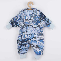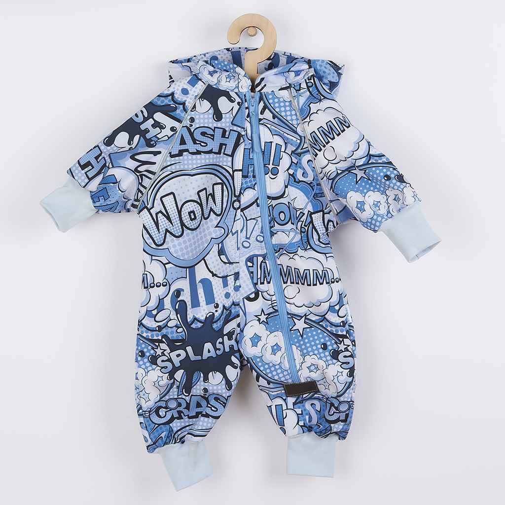 Nápaditý softshellový kojenecký overal New Baby. Overal je celopotištěný dětským vzorem. Overálek je vyroben v České republice z kvalitního materiálu softshell. Materiál je hladký, elestický, měkký a příjemný na dotek. Do určitého stupně je také voděodolný, nenasakuje vodu a je odolný vůči znečištění. Praktické zapínání na zip po celé délce velmi usnadní oblékání a přebalování. Zip je po celé délce podšitý látkou, a tím je zamezeno profukování větru na pokožku miminka. Kombinéza má praktickou kapuci, širší pružné lemy na rukách a nohavičkách a celá vnitřní strana je zateplená krátko střiženým polarem, který zvyšuje komfort nošení a zajišťuje teplo. Na rukávcích jsou našité reflexní paspulky. Softshellový overálek je vhodný jako sportovní oblečení, je odolný větru a zároveň prodyšný. Miminko se bude cítit velmi pohodlně a příjemně.