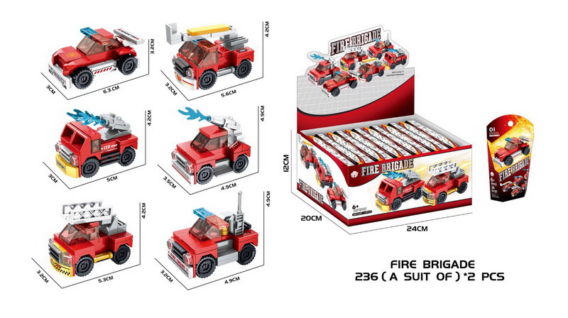 Stavebnice auto hasičské. Rozměry 5,6x3,2x4,2 cm. 12 ks display box. 6 variant.