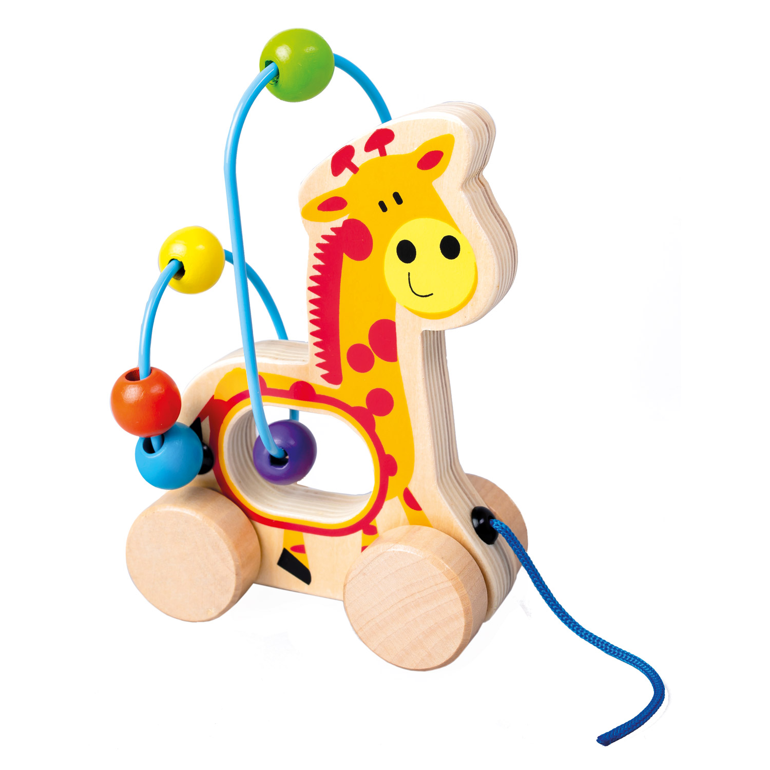 Tahací hračka s motivem žirafy, která pomáhá dětem s jejich prvními krůčky a cvičením rovnováhy.