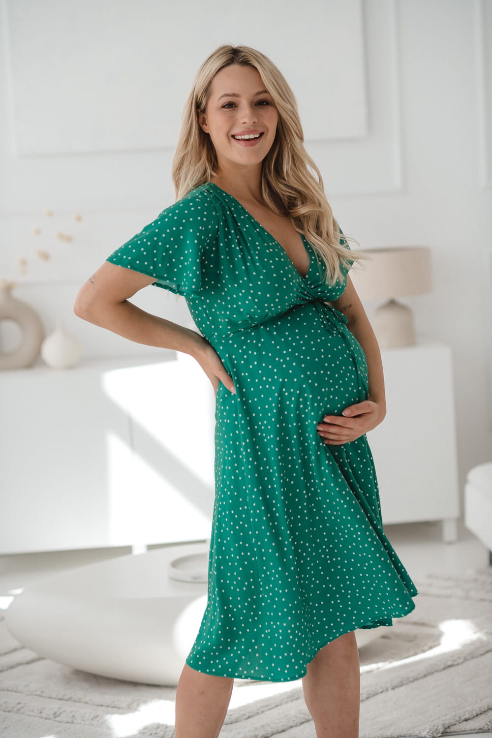 Elegantní těhotenské šaty z lehké viskózové tkaniny.
