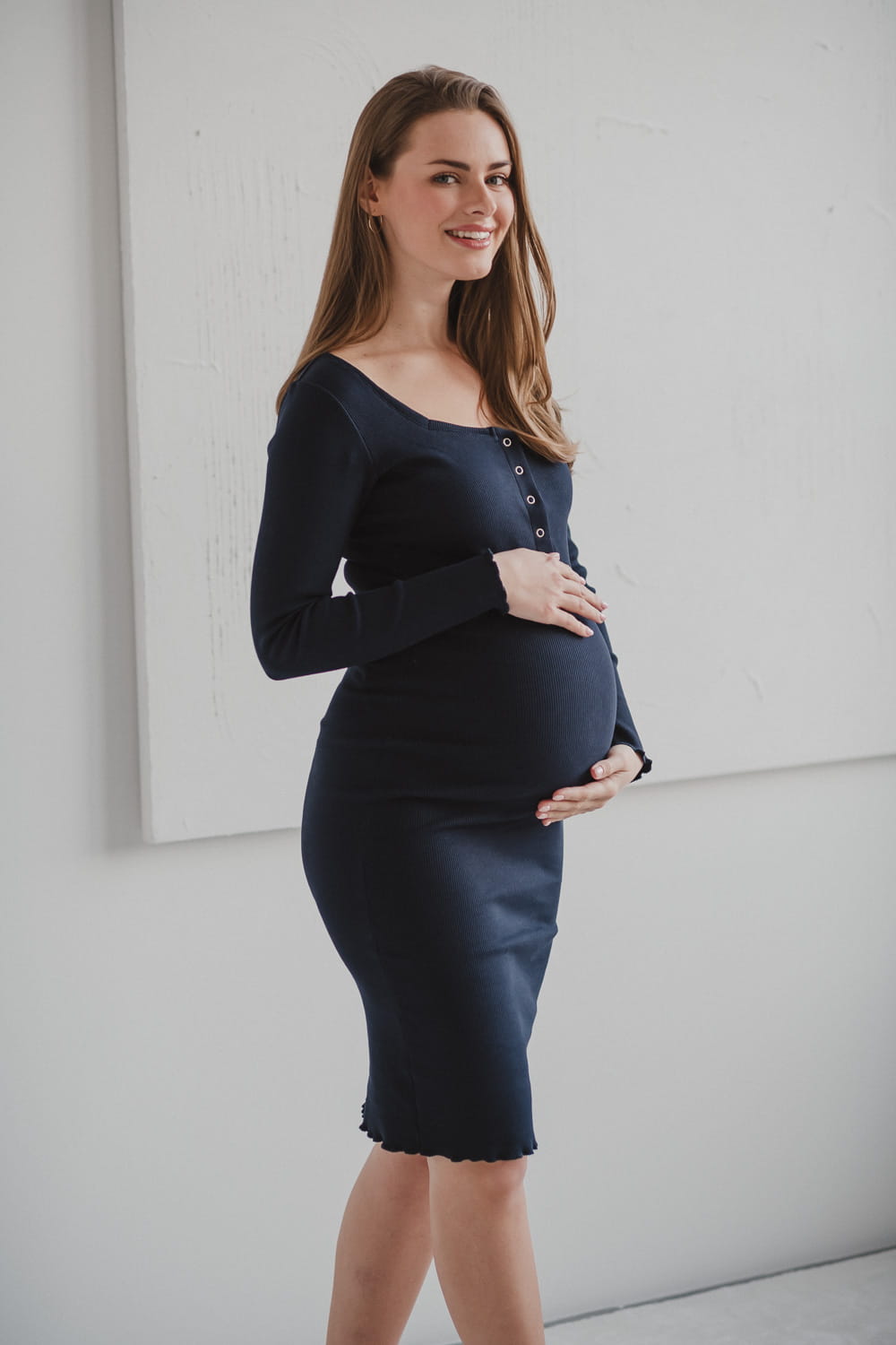 Těhotenské a kojicí šaty Tummy jsou univerzálního střihu, které můžete nosit před těhotenstvím, během něj i po něm. Díky žebrované struktuře je úplet super pružný a přizpůsobí se i velmi velkému těhotenskému bříšku. Materiál se nedeformuje - po vyprání se vrátí do původního tvaru. Žebrované šaty mají tužkový, vypasovaný střih, který krásně zvýrazní těhotenské bříško, a proto si je budoucí maminky velmi často vybírají na těhotenské sezení - zakulacené bříško v nich vypadá rozkošně! :)