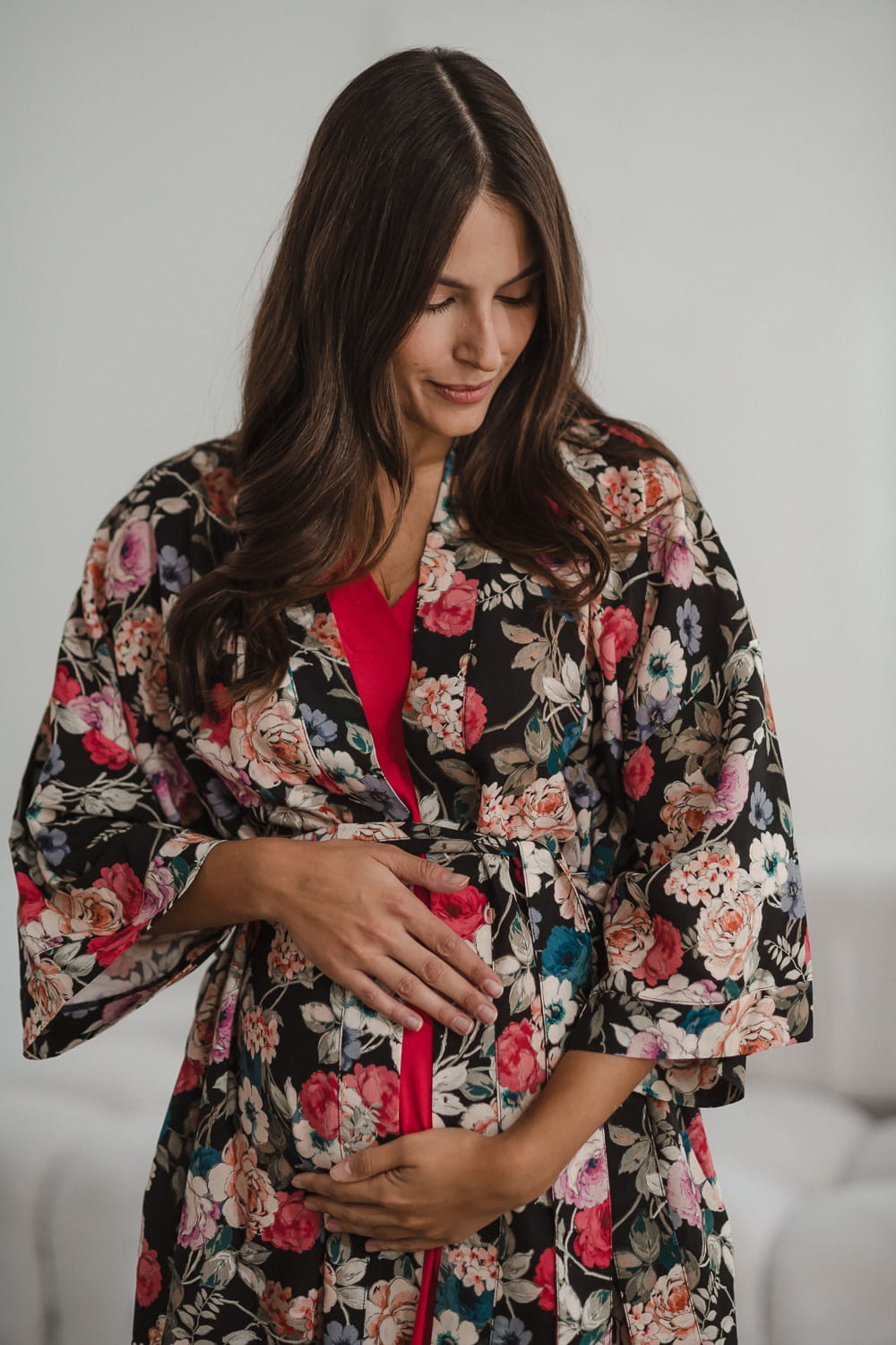 Župan kimono je navržen tak, aby se přizpůsobil měnícímu se tvaru vašeho těla během těhotenství a po porodu.